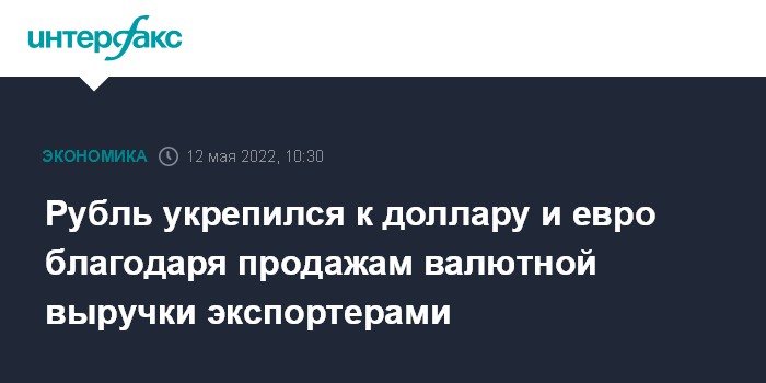 По мнению экспертов "Интерфакс-ЦЭА", рост курса рубля к доллару и евро в начале торгов 12 мая обусловлен как сохраняющимся превышением предложения валюты на внутреннем рынке над спросом на нее в условиях сильного торгового сальдо и введенных ограничений на капитальные операции для нерезидентов, так и растущими мировыми ценами на газ. Существующий валютный навес "перебарывает" даже в целом негативную конъюнктуру мировых рынков капитала, в том числе ухудшение ситуации на нефтяных площадках.