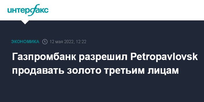Москва. 12 мая. INTERFAX.RU - Газпромбанк, имеющий право на выкуп 100% производимого Petropavlovsk золота, разрешил компании продавать драгметалл третьим лицам, сообщила золотодобывающая компания.
