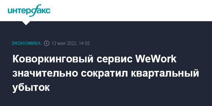 Москва. 12 мая. INTERFAX.RU - В I квартале 2022 года американский коворкинговый сервис WeWork существенно сократил чистый убыток - до $435 млн против $2,03 млрд годом ранее при росте выручки на 28%.