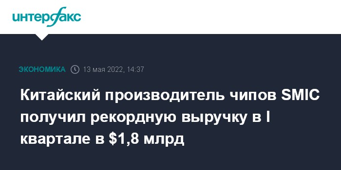 Москва. 13 мая. INTERFAX.RU - Крупнейший китайский производитель микропроцессоров Semiconductor Manufacturing International Corp (SMIC) зафиксировал рекордную выручку в первом квартале на фоне подъема спроса на продукцию в связи с мировым дефицитом полупроводников.