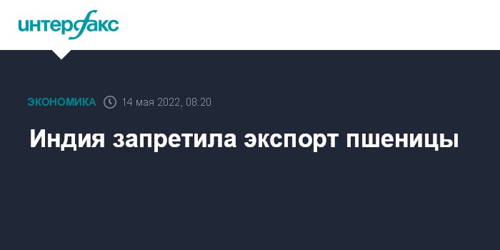Москва. 14 мая. INTERFAX.RU - Правительство Индии поздним вечером в пятницу издало указ о запрете экспорта пшеницы из страны для обеспечения продовольственной безопасности и для помощи соседним и нуждающимся государствам, сообщает Times of India со ссылкой на текст документа.