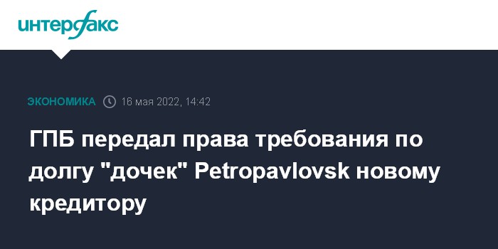ГПБ передал права требования по долгу "дочек" Petropavlovsk новому кредитору