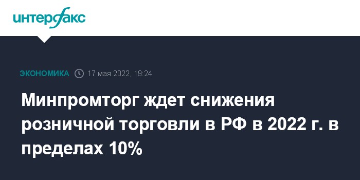 Опрошенные в начале мая "Интерфаксом" аналитики прогнозировали возможное падение розничной торговли в РФ по итогам 2022 года на уровне 9,6%.