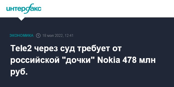 Tele2 через суд требует от российской "дочки" Nokia 478 млн руб.