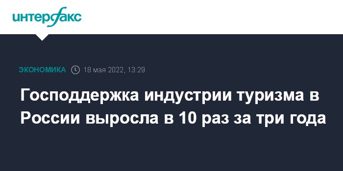 Москва. 18 мая. INTERFAX.RU - В России за последние три года господдержка индустрии туризма выросла в десять раз, до почти 75 млрд рублей в 2022 году, заявила в Госдуме на правительственном часе глава Ростуризма Зарина Догузова.