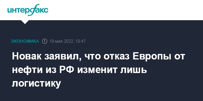Москва. 19 мая. INTERFAX.RU - Отказ европейских стран от российской нефти приведет к изменению исторических логистических цепочек поставок, но не пошатнет баланс на рынке энергоресурсов, сообщил вице-премьер Александр Новак на форуме "Новые горизонты" российского общество "Знание".
