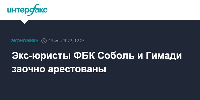 Москва. 19 мая. INTERFAX.RU - Басманный суд Москвы заочно арестовал бывших юристов признанного в РФ экстремистским и запрещенного "Фонда борьбы с коррупцией" Любовь Соболь (признана СМИ-иноагентом) и Вячеслава Гимади, обвиняемых по делу о мошенничестве и создании экстремистского сообщества.