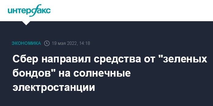 Москва. 19 мая. INTERFAX.RU - Сбербанк отчитался о размещении средств, привлеченных в рамках выпуска "зеленых" облигаций в объеме 25 млрд рублей: все деньги были направлены на рефинансирование строительства восьми солнечных электростанций, сообщается в пресс-релизе кредитной организации.
