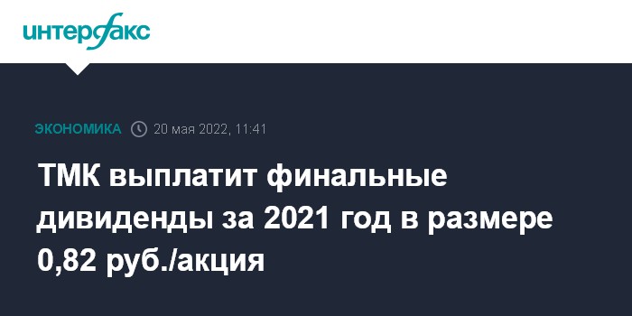ТМК выплатит финальные дивиденды за 2021 год в размере 0,82 руб./акция