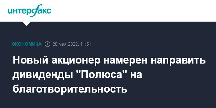 Новый акционер намерен направить дивиденды "Полюса" на благотворительность