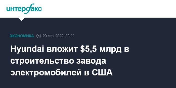 Москва. 23 мая. INTERFAX.RU - Южнокорейский автопроизводитель Hyundai Motor Group подтвердил сообщения о строительстве завода по выпуску электромобилей в США, сообщает Market Watch.