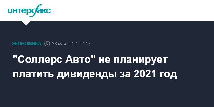 Москва. 23 мая. INTERFAX.RU - Совет директоров ПАО "Соллерс Авто" рекомендовал не выплачивать дивиденды за 2021 г., годовое собрание акционеров пройдет 30 июня в заочном формате, сообщила компания.