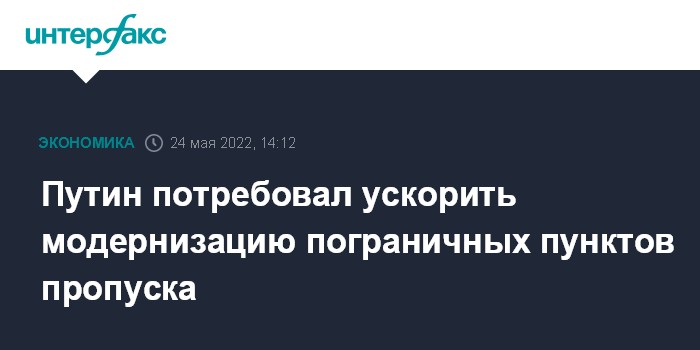 Москва. 24 мая. INTERFAX.RU - Президент Владимир Путин на совещании о развитии транспортного комплекса потребовал ускорить строительство новых и модернизацию действующих пограничных пунктов пропуска.
