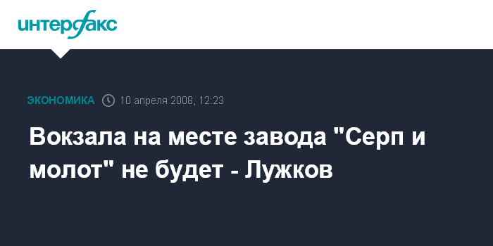 Вокзала на месте завода "Серп и молот" не будет - Лужков