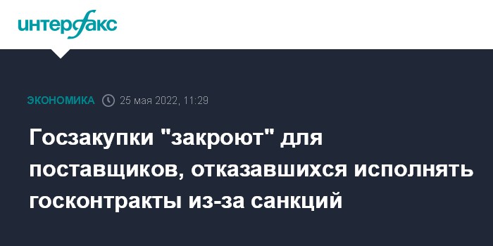 "Правительство предусмотрело решение, которое позволит снизить риск неисполнения госконтрактов из-за внешних санкций, введённых в отношении госзаказчиков, - говорится в сообщении на сайте правительства. - Так, в госзакупках не смогут участвовать компании, включённые в реестр недобросовестных поставщиков из-за отказа от исполнения контракта по причине того, что заказчик попал под санкции иностранных государств".
