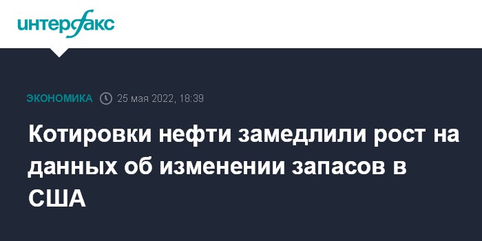 Москва. 25 мая. INTERFAX.RU - Котировки нефти замедлили рост после публикации в среду статистики Минэнерго США об изменении запасов топлива в стране.