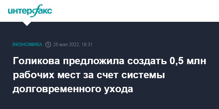 "Это еще по сути создание новой отрасли экономики в России - системы долговременного ухода. При полной реализации этого проекта возможно, по нашим расчетам, создание до 500 тысяч новых рабочих мест как отдельной отрасли. И естественно, поскольку это отрасль экономики, то это дополнительные налоги и, в первую очередь, это налоги для бюджетов субъектов Федерации, поскольку существенную долю в оказании услуги занимает заработная плата", - сказала она.