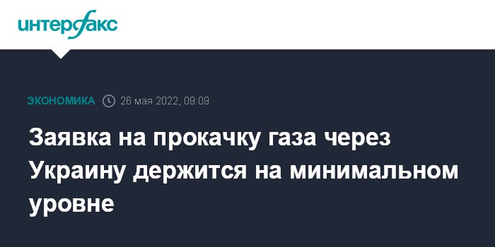 Москва. 26 мая. INTERFAX.RU - "Оператор ГТС Украины" принял от "Газпрома" заявку на транзит газа на четверг в объеме 44,3 млн куб. м, свидетельствуют данные ОГТСУ. Показатель в среду был также 44,3 млн куб. м. Мощности заявлены только по одной из двух точек входа в ГТС Украины - газоизмерительной станции "Суджа". По коридору через ГИС "Сохрановка" заявка не принята.
