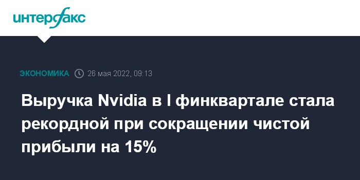 Москва. 26 мая. INTERFAX.RU - Американский производитель графических процессоров Nvidia Corp зафиксировал рекордную выручку в первом финансовом квартале, однако чистая прибыль компании уменьшилась на 15%.