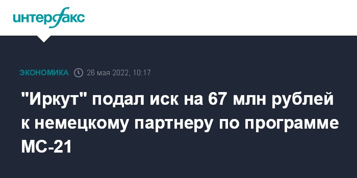 "Иркут" подал иск на 67 млн рублей к немецкому партнеру по программе МС-21