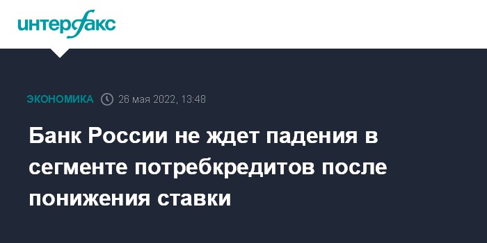 Банк России не ждет падения в сегменте потребкредитов после понижения ставки