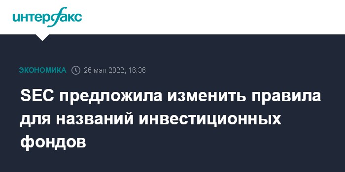 Москва. 26 мая. INTERFAX.RU - Комиссия по ценным бумагам и биржам США (SEC) предложила изменить правило о наименовании инвестиционных фондов (так называемое "Правило имен") с учетом современных реалий.