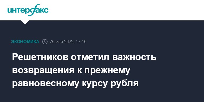 Решетников отметил важность возвращения к прежнему равновесному курсу рубля