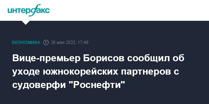 Вице-премьер Борисов сообщил об уходе южнокорейских партнеров с судоверфи "Роснефти"
