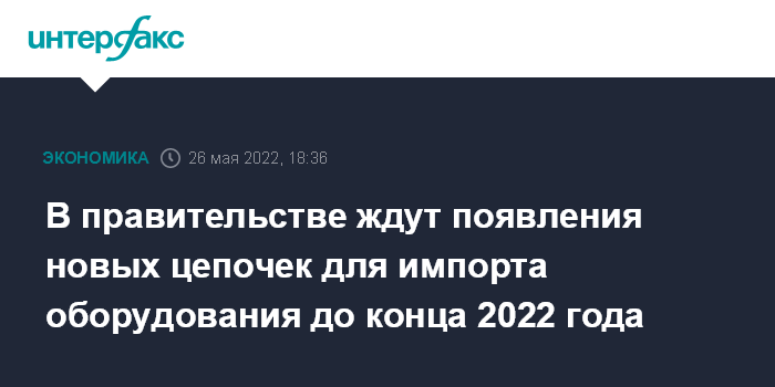 В правительстве ждут появления новых цепочек для импорта оборудования до конца 2022 года