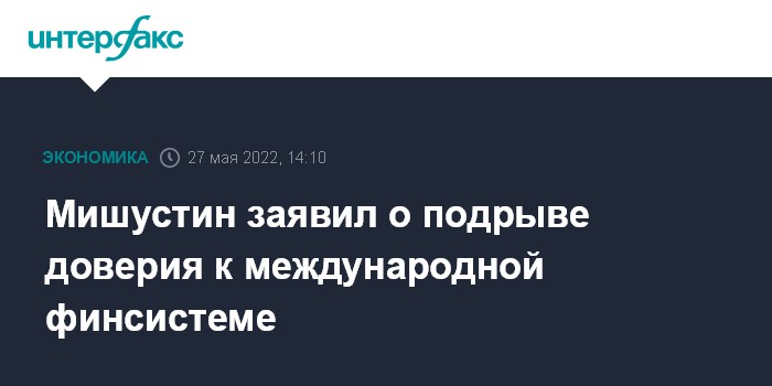 Москва. 27 мая. INTERFAX.RU - Западные страны, заморозив зарубежные активы России, подорвали доверие к международной финансовой системе и резервным валютам, заявил премьер России Михаил Мишустин, выступая перед суперфиналистами конкурса "Лидеры России".