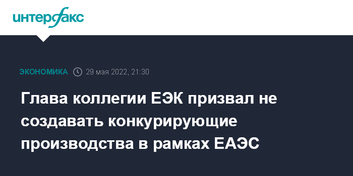Москва. 29 мая. INTERFAX.RU - Председатель коллегии Евразийской экономической комиссии (ЕЭК) Михаил Мясникович призвал не создавать конкурирующие производства в рамках Евразийского экономического союза.
