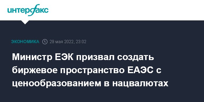 "Перейти на расчеты в нацвалютах легко. Это же не ограничивается пересчетом через кросс-курс к долларам, предположим. Нужно прямое курсообразование, наши биржи должны сами определять соотношение курсов (нацвалют - ИФ)", - добавил министр.