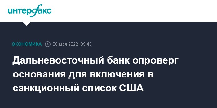 Дальневосточный банк опроверг основания для включения в санкционный список США