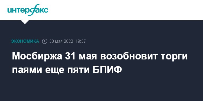 Мосбиржа 31 мая возобновит торги паями еще пяти БПИФ