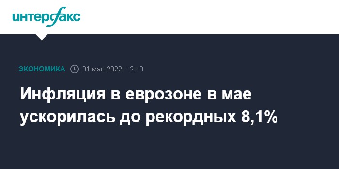 Инфляция в еврозоне в мае ускорилась до рекордных 8,1%