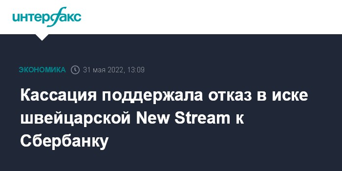 Кассация поддержала отказ в иске швейцарской New Stream к Сбербанку