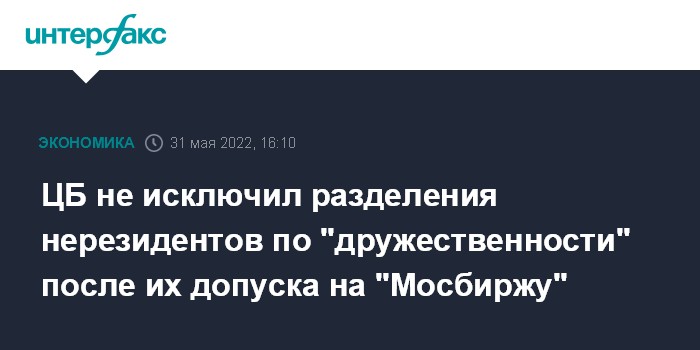 Ранее источники "Интерфакса" сообщили, что "Московская биржа" в конце июня планирует запустить отдельный режим торгов для нерезидентов, где они смогут за рубли продавать и покупать российские ценные бумаги. Торги для нерезидентов будут проходить в режиме переговорных сделок, по крайней мере первое время.