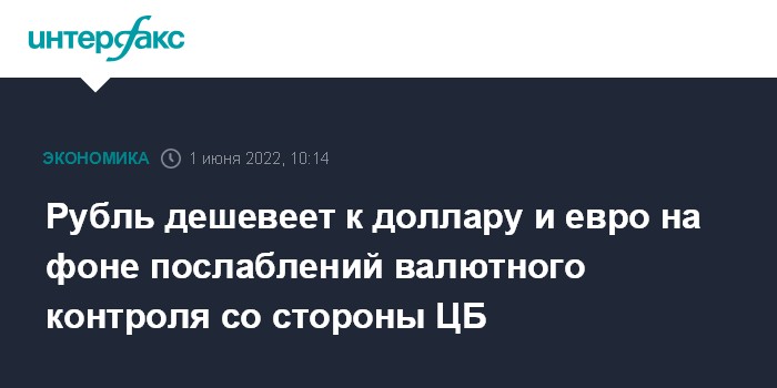 Как отмечают эксперты "Интерфакс-ЦЭА", рубль дешевеет к доллару и евро на старте торгов на фоне новых послаблений валютного контроля со стороны Банка России и в рамках коррекции после роста в начале недели. Банк России сообщил, что отменяет запрет на короткие продажи ценных бумаг на биржевом рынке, а также запрет на покупку валюты с плечом.