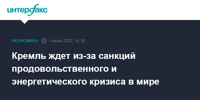 Кремль ждет из-за санкций продовольственного и энергетического кризиса в мире