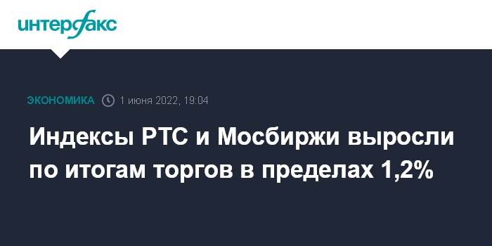 Индексы РТС и Мосбиржи выросли по итогам торгов в пределах 1,2%