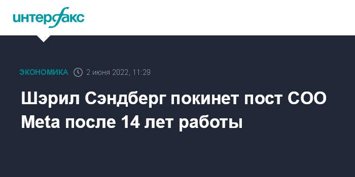 На своей странице в Facebook (информационный ресурс запрещенной в РФ организации) 52-летняя Сэндберг заявила, что уйдет с поста главного операционного директора компании осенью этого года, однако останется членом совета директоров Meta.
