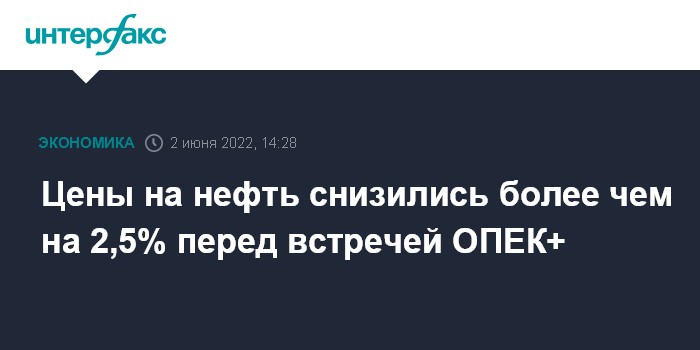 Москва. 2 июня. INTERFAX.RU - Цены на нефть теряют более 2,5% на торгах в четверг перед встречей министров стран ОПЕК+.