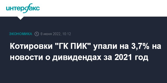Котировки "ГК ПИК" упали на 3,7% на новости о дивидендах за 2021 год