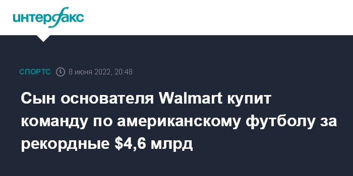 Сын основателя Walmart купит команду по американскому футболу за рекордные $4,6 млрд