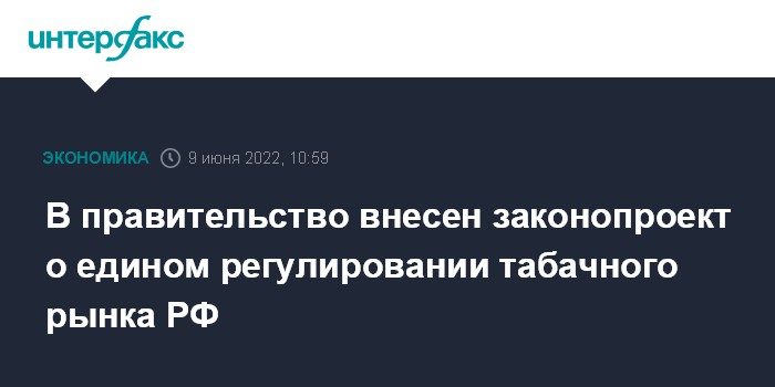 Москва. 9 июня. INTERFAX.RU - Минфин России внес в правительство законопроект "О государственном регулировании производства и оборота табачных изделий, табачной продукции, никотинсодержащей продукции и сырья для их производства".