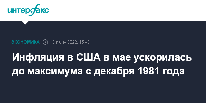 Инфляция в США в мае ускорилась до максимума с декабря 1981 года