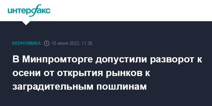 В Минпромторге допустили разворот к осени от открытия рынков к заградительным пошлинам