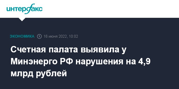 Счетная палата выявила у Минэнерго РФ нарушения на 4,9 млрд рублей
