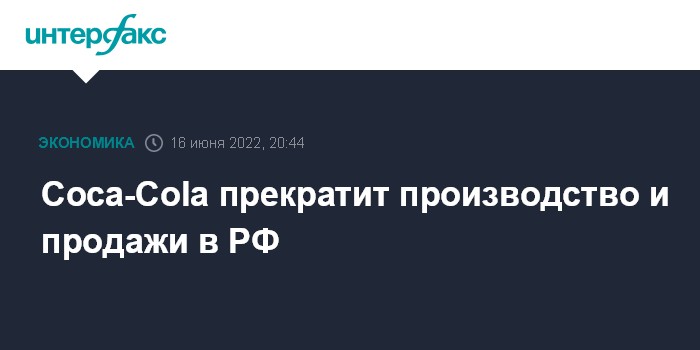 Москва. 16 июня. INTERFAX.RU - Coca-Cola Hellenic Bottling Company (HBC), боттлер Coca-Cola Co. , не будет производить и прекратит продажи в РФ напитков Coca-Cola и других брендов компании.