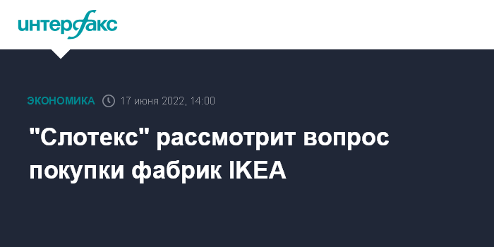 Москва. 17 июня. INTERFAX.RU - АО "Слотекс" в перспективе готово рассмотреть покупку мебельных заводов шведской IKEA, если иностранная компания примет окончательное решение продать активы в РФ.